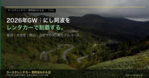 2026年の母の日は5月10日(日)。「母と娘でどこかへ行きたいけれど、運転は大変、遠すぎない、でも特別感のある場所」——そんな方に、レンタカーで出かけるにし阿波 母娘日帰り旅をご提案します。東みよし町を起点に、祖谷の絶景・カフェランチ・温泉まで全部楽しめる1日コースです。